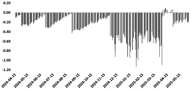 图为伦敦银-COMEX银价差(单位:美元/盎司)