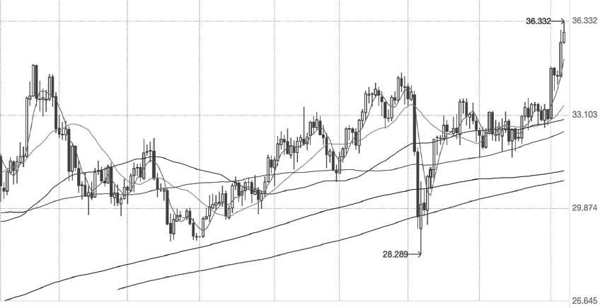 图为国际银价走势(单位:美元/盎司)