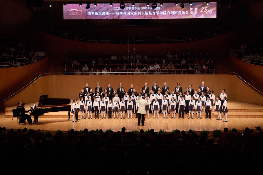 今天上午上午,莫斯科柴科夫斯基音乐学院(简称“柴院”)合唱团首次来华巡演的末站演出在上海东方艺术中心(简称“东艺”)上演,为2025“柴院在东艺”系列活动画上圆满句号。作为闭幕音乐会,演出开场前门票已近售罄,合唱团还特邀东艺童声合唱团同台,在返场曲目《灯火里的中国》《这世界那么多人》中展现中俄合唱艺术魅力,最终在全场大合唱的温暖氛围中落幕。此次“柴院在东艺”系列横跨6个月,线上线下超7000人次参与。